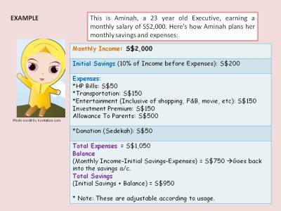 As you can see from the diagram above, there is Initial Savings of 10% of monthly income before expenses, this is to encourage yourself to save the minimum required.