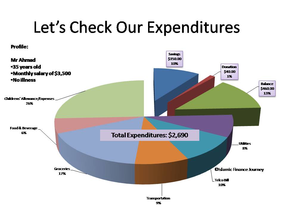 So, as per the scenario in the figure above, the total Expenditures is $2,690. Mr Ahmad has a surplus of $460.